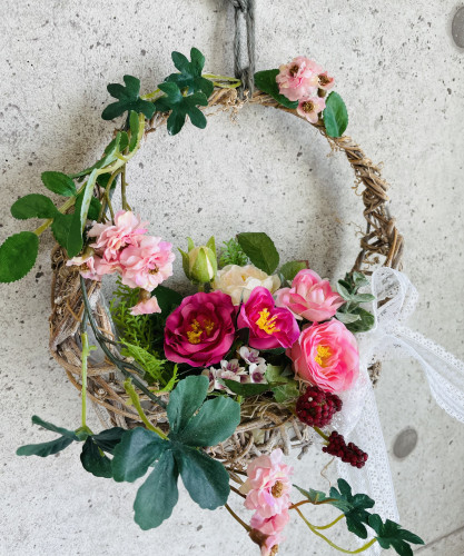 母の日フラワー*アーテイフィシャルフラワーで創るバック型リース